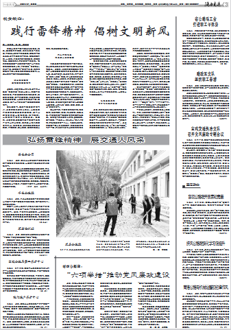 陕交讯 近日,子长公路段组织干部职工到龙虎山将军亭开展学雷锋志愿服务活动,缅怀革命先烈、凝聚奋进力量。
