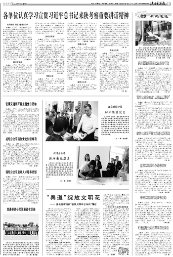 各单位认真学习宣贯习近平总书记来陕考察重要讲话精神